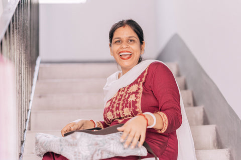 education, ensuring a brighter future for their lives. Despite the fact that she commutes from Kalighat, a journey that takes two and a half hours, her dedication to learning sewing and gratitude for the opportunity remain unwavering. Each time she creates products, her hope for herself and her children becomes increasingly positive.